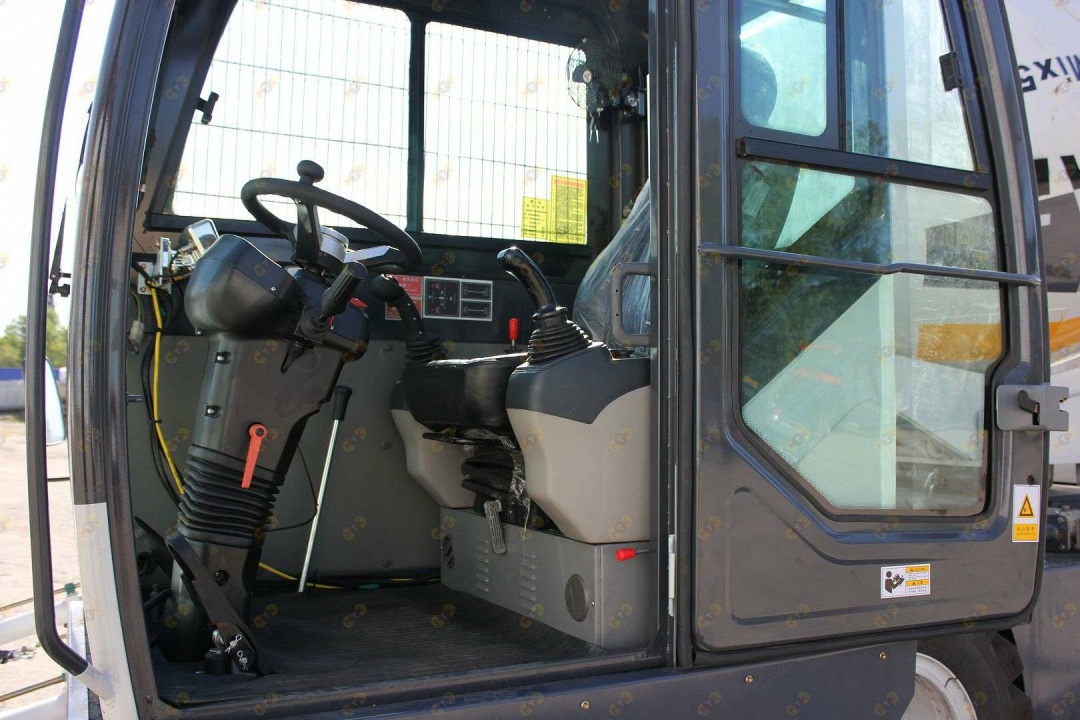 Машина оснащена мощным 156-сильным дизельным двигателем YUCHAI, автоматической коробкой передач и системой полного привода 4×4, обеспечивающей уверенное движение даже по сложному бездорожью. Бетоносмесительный барабан имеет наклон 16°, что способствует равномерному смешиванию и быстрой выгрузке смеси.