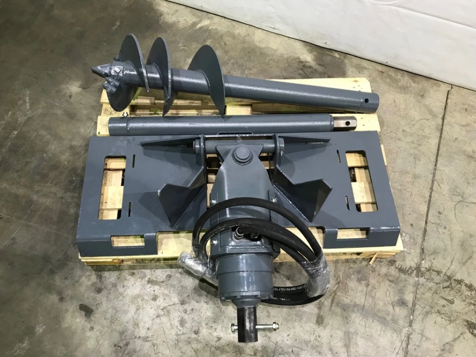 Буровая установка - навесной ямобур на фронтальный мини погрузчик для бурения круглых отверстий в немерзлом грунте.