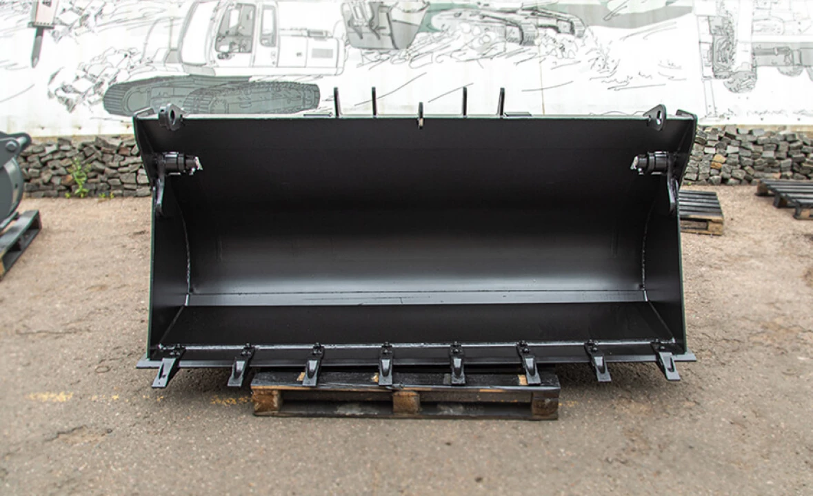 Ковш укомплектован г/цилиндрами и РВД. Режущий элемент бульдозерного отвала изготовлен из высокопрочной стали. Ковш поставляется в исполнении со сменным ножом или зубьями на болтовом соединении.