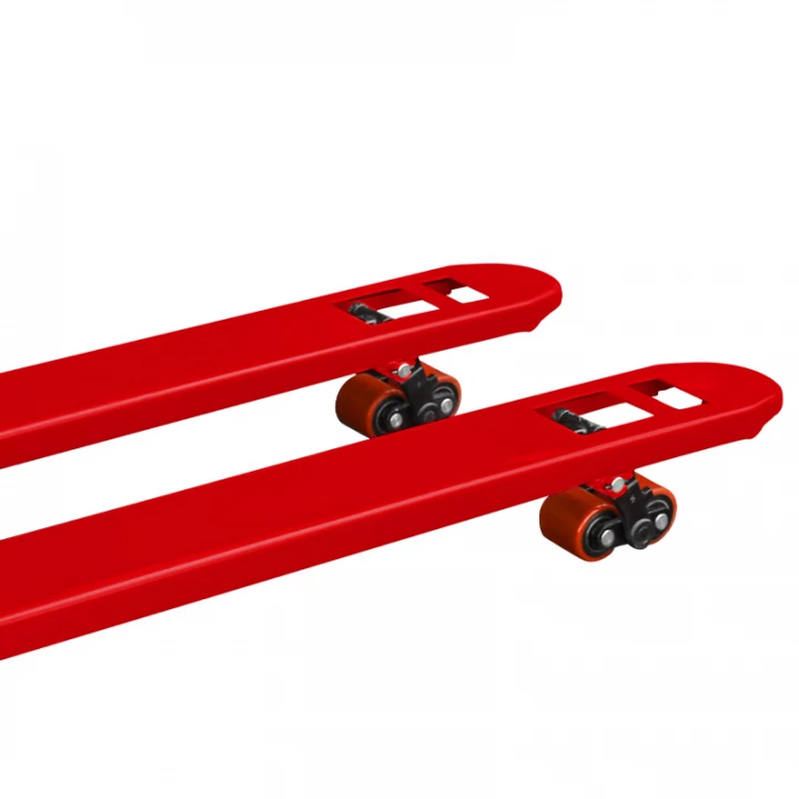 Резиновые колеса прекрасно подойдут для неровных полов, обеспечив мягкость хода тележки и ее бесшумность. Оборудование оснащено усиленным гидроцилиндром, что позволяет легко перемещать тяжелые паллеты и поддоны с грузом даже максимально допустимого веса.