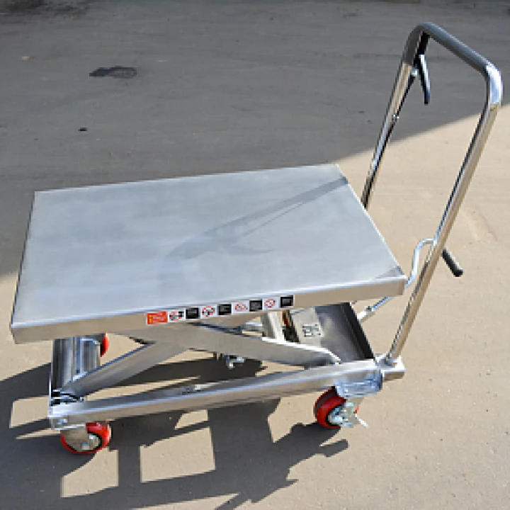 Тележка с подъемной платформой предназначена для работы в складских помещениях, производственных предприятий для транспортировки коробок, инструментов и других грузов. Способны поднимать и перемещать грузы весом до 0.5т на высоту до 900мм.