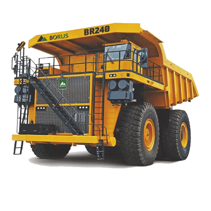 BORUS BR240 — это карьерный самосвал грузоподъемностью 230 тонн с вместимостью кузова с шапкой 148 куб.м., оснащенный надежным двигателем MTU мощностью 1865 кВт.