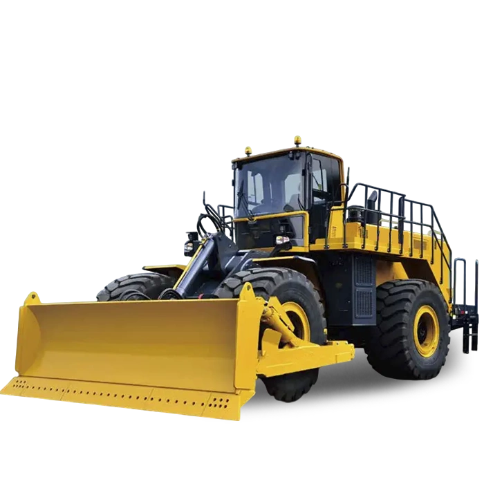 Тяжелый бульдозер на колесном ходу с двигателем Cummins QSK19, мощность 560 л.с., эксплуатационная масса 50 000 кг, защита кабины ROPS/FOPS, шины 35/65-33, полусферический отвал с гидравлическим перекосом 7,9 м3, отопитель, автоматическая система смазки, автоматическая система пожаротушения, предпусковой подогреватель