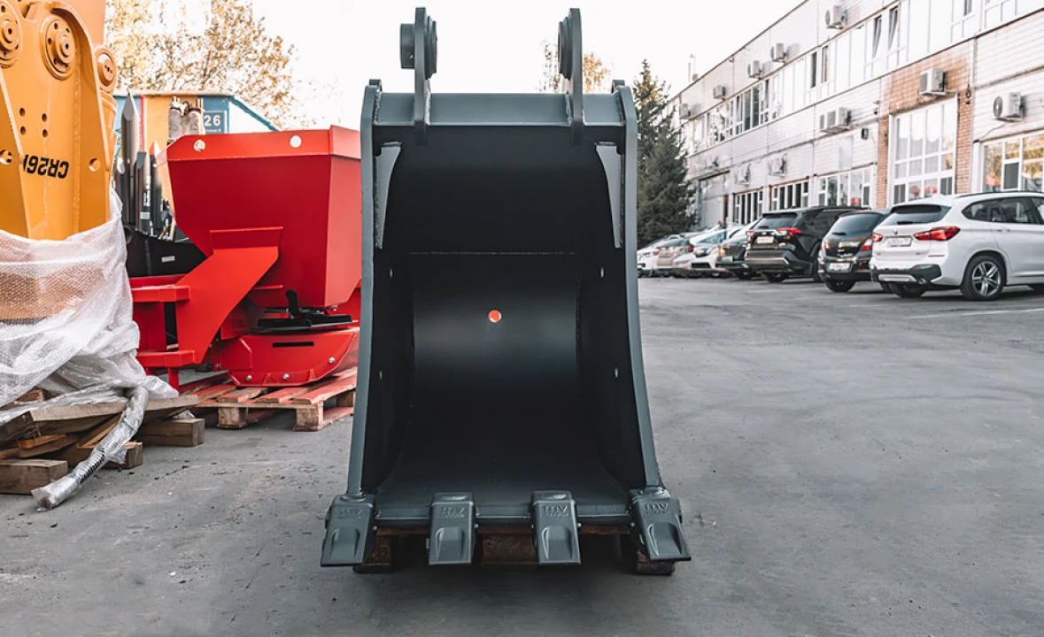 Траншейный ковш имеет специальную конструкцию для предотвращения налипания грунта при рытье траншей. Выбирая траншейный ковш, необходимо учитывать возможности конкретной модели экскаватора, а именно: ширину рукояти, наличие быстросъемного механизма крючкового типа – эти факторы определяют минимально возможную ширину траншейного ковша. При работе в глинистых грунтах на ковше необходимы бокорезы, которые имеют специальную плоскую конструкцию, чтобы обеспечить формирование ровных откосов траншеи.