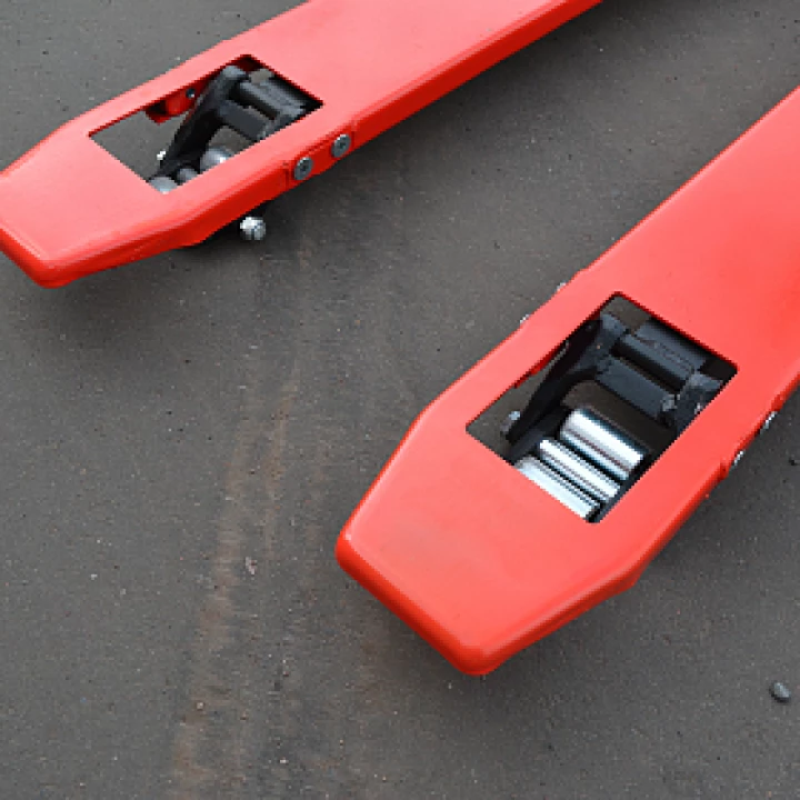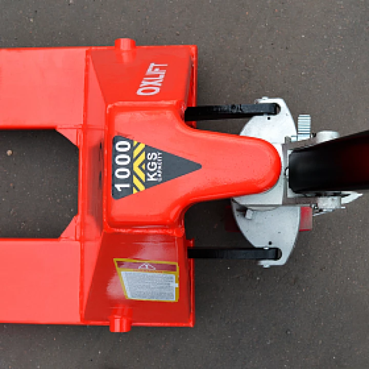 Модель OX10-L35 обеспечивает наименьшую высоту подбора палетированных грузов среди низкопрофильных гидравлических тележек OXLIFT – всего 35 мм!