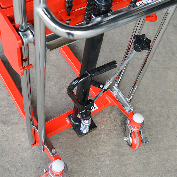 Ручной штабелер с гидравлическим приводом, используемый для работы с грузами весом до 400 кг. Обеспечивает быстрый подъём на высоту до 1,5 метров, что позволяет значительно ускорить процесс проведения погрузочно-разгрузочных работ и размещения на невысоких стеллажах.Подходит для стандартных паллетов (ширина вил 55 см). Возможна транспортировка товаров, не размещённых на поддонах, благодаря оснащению съёмной грузовой платформой.Конструкция сделана из прочных и качественных материалов, что гарантирует отличную устойчивость к высоким нагрузкам и поломкам. Колёса не оставляют следов на покрытии (задние – ведущие).