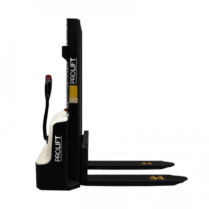 Самоходный штабелер PROLIFT M2 SDR 1030 с литий-ионной АКБ предназначен для поднятия груза весом до 1000 кг на высоту до 3000 мм. Подъем груза и перемещение штабелера осуществляется благодаря двум электродвигателям без необходимости прилагать физические усилия оператору, что значительно облегчает труд сотрудника и повышает производительность. Мачта выполнена из С-образного профиля с дополнительными ребрами жесткости. Благодаря такой конструктивной особенности срок эксплуатации штабелера значительно возрастает. На самоходном штабелере PROLIFT M2 SDR 1030 установлен Li-ion аккумулятор емкостью 50 Ач. Встроенный индикатор заряда показывает напряжение АКБ, что позволит вам всегда поддерживать оборудование в рабочем состоянии. С целью повышения безопасности и комфорта работы сотрудника, на штабелере установлено множество дополнительных элементов, в частности: кнопка аварийного отключения, позволяющая быстро отключить штабелер в случае возникновения опасной ситуации, решетчатый экран на мачте, защищающий оператора от возможных травм, а ручка управления имеет интегрированный замок зажигания и полный набор необходимых клавиш управления, в том числе кнопку «черепашьего хода». Функция «черепашьего хода» позволяет ограничивать скорость движения штабелера для лучшего его позиционирования.