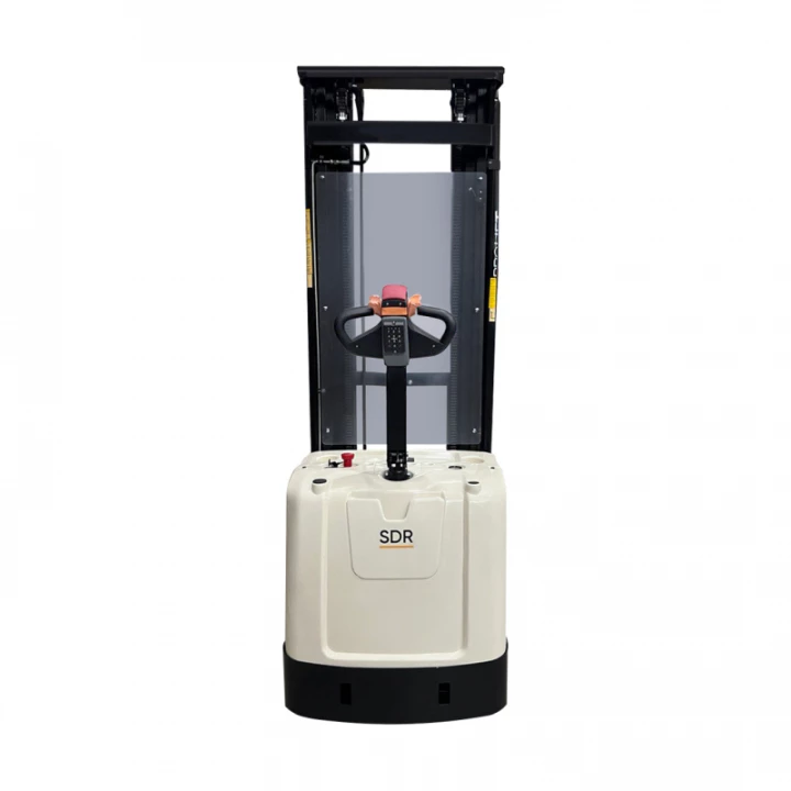 Самоходный штабелер PROLIFT M2 SDR 1645 предназначен для поднятия груза весом до 1600 кг на высоту до 4500 мм. Подъем груза и перемещение штабелера осуществляется благодаря двум электродвигателям без необходимости прилагать физические усилия оператору, что значительно облегчает труд сотрудника и повышает производительность. Мачта выполнена из С-образного профиля с дополнительными ребрами жесткости. На самоходном штабелере PROLIFT M2 SDR 1645 установлен аккумулятор AGM типа емкостью 280 Ач, рассчитанный на 8 часов интенсивной работы. Так же возможна комплектация штабелера li-ion аккумулятором емкостью 150 Ач. Встроенный индикатор заряда показывает напряжение АКБ, что позволит вам всегда поддерживать оборудование в рабочем состоянии. С целью повышения безопасности и комфорта работы сотрудника, на штабелере установлено множество дополнительных элементов, в частности: кнопка аварийного отключения, позволяющая быстро отключить штабелер в случае возникновения опасной ситуации, защитный экран на мачте из оргстекла, защищающий оператора от возможных травм, а ручка управления имеет интегрированный замок зажигания и полный набор необходимых клавиш управления, в том числе кнопку «черепашьего хода». Функция «черепашьего хода» позволяет ограничивать скорость движения штабелера для лучшего его позиционирования. Также особенностью данного штабелера является наличие функции свободного подъема вил, что позволяет эффективно работать в условиях ограниченного пространства.