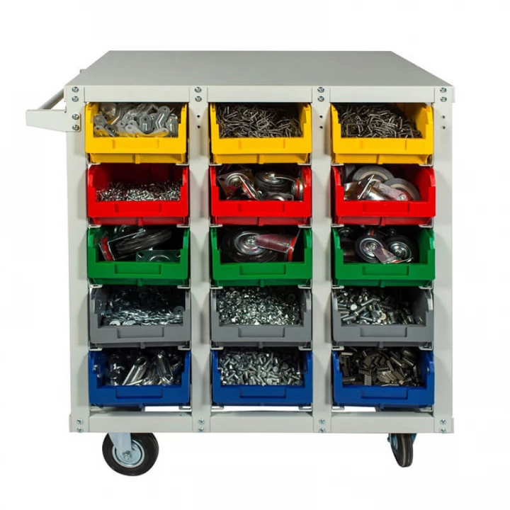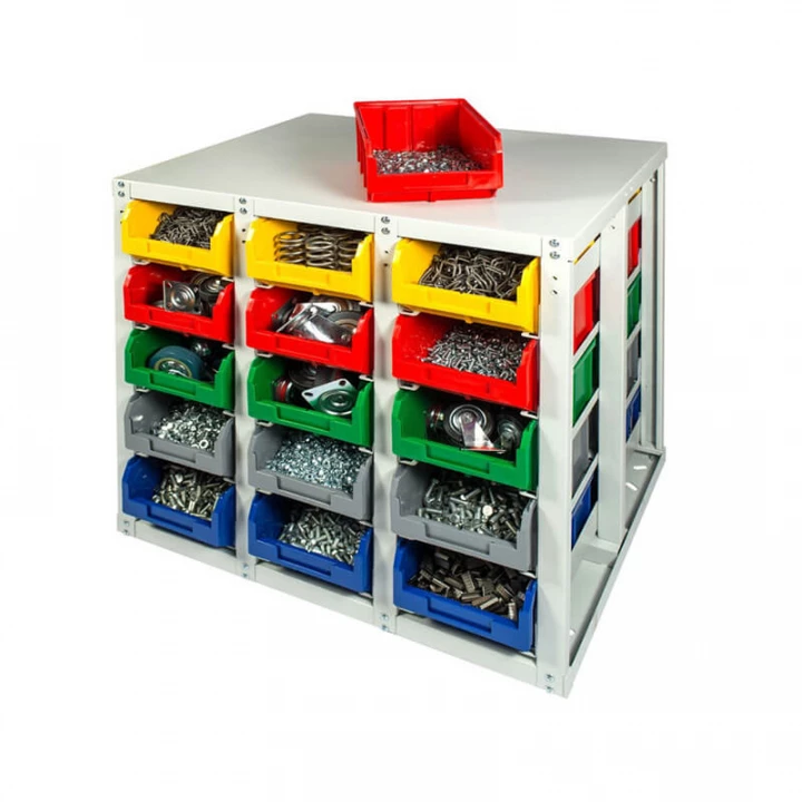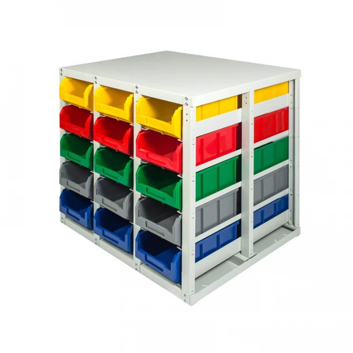 Серый (стеллаж), цветной (ящики)