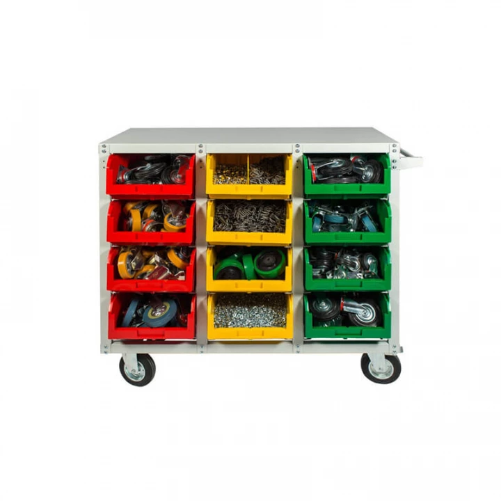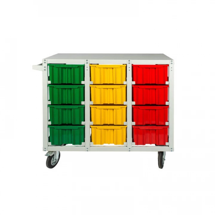 Серый (стеллаж), цветной (ящики)