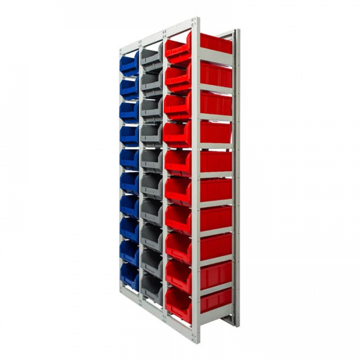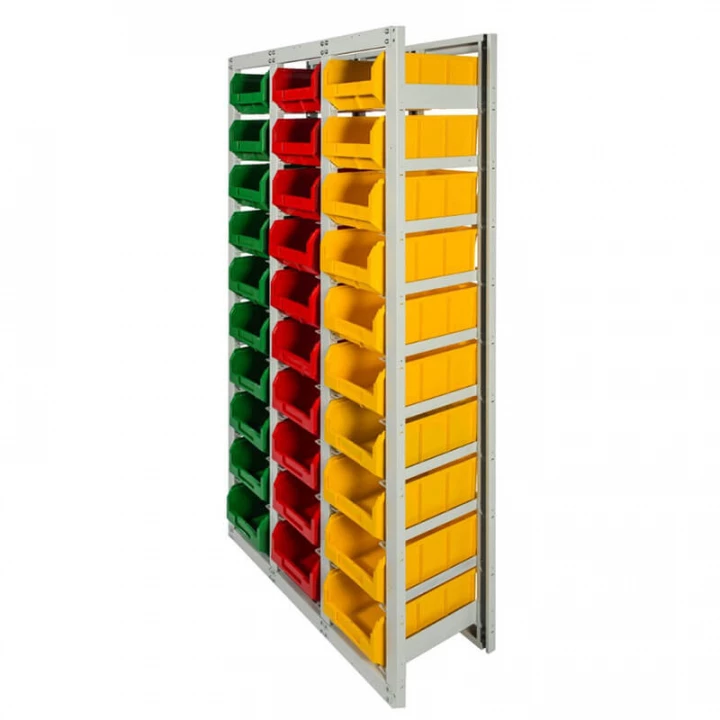 Серый (стеллаж), цветной (ящики)
