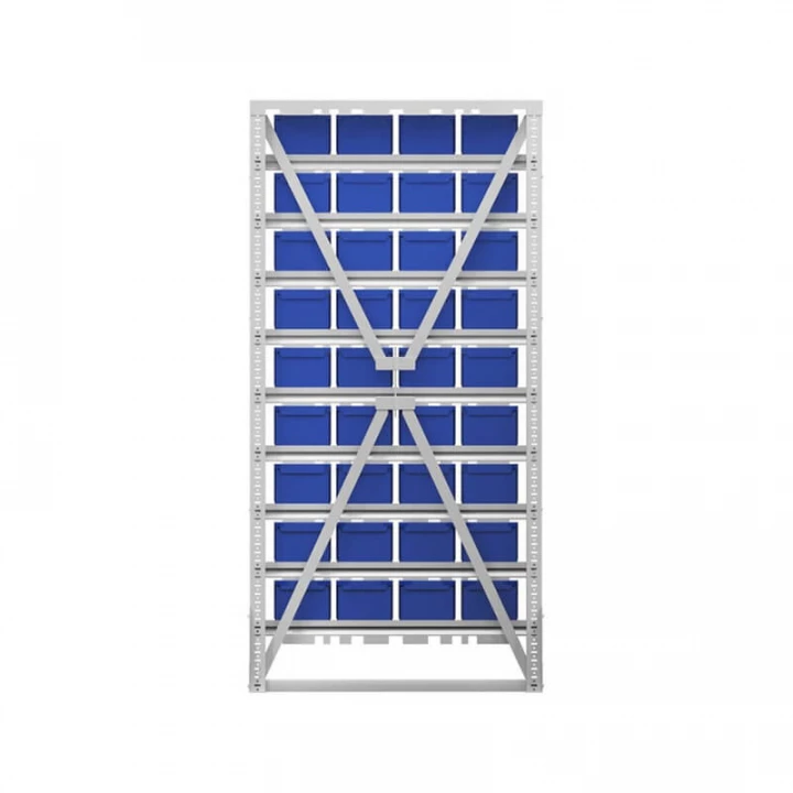 Серый (рама), синий (ящики)