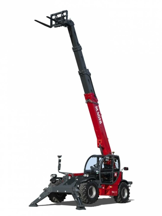 Новый телескопический погрузчик MAGNI TH 4,5.19: грузоподъемность - 4500 кг, максимальная рабочая высота подъема - 18.80 м, горизонтальный вылет: 14.20 м. Вилочные погрузчики с телескопической стрелой MAGNI в наличии на складе, оперативные отгрузки, собственный сервис-центр, доставка спецтехники на объект заказчика.